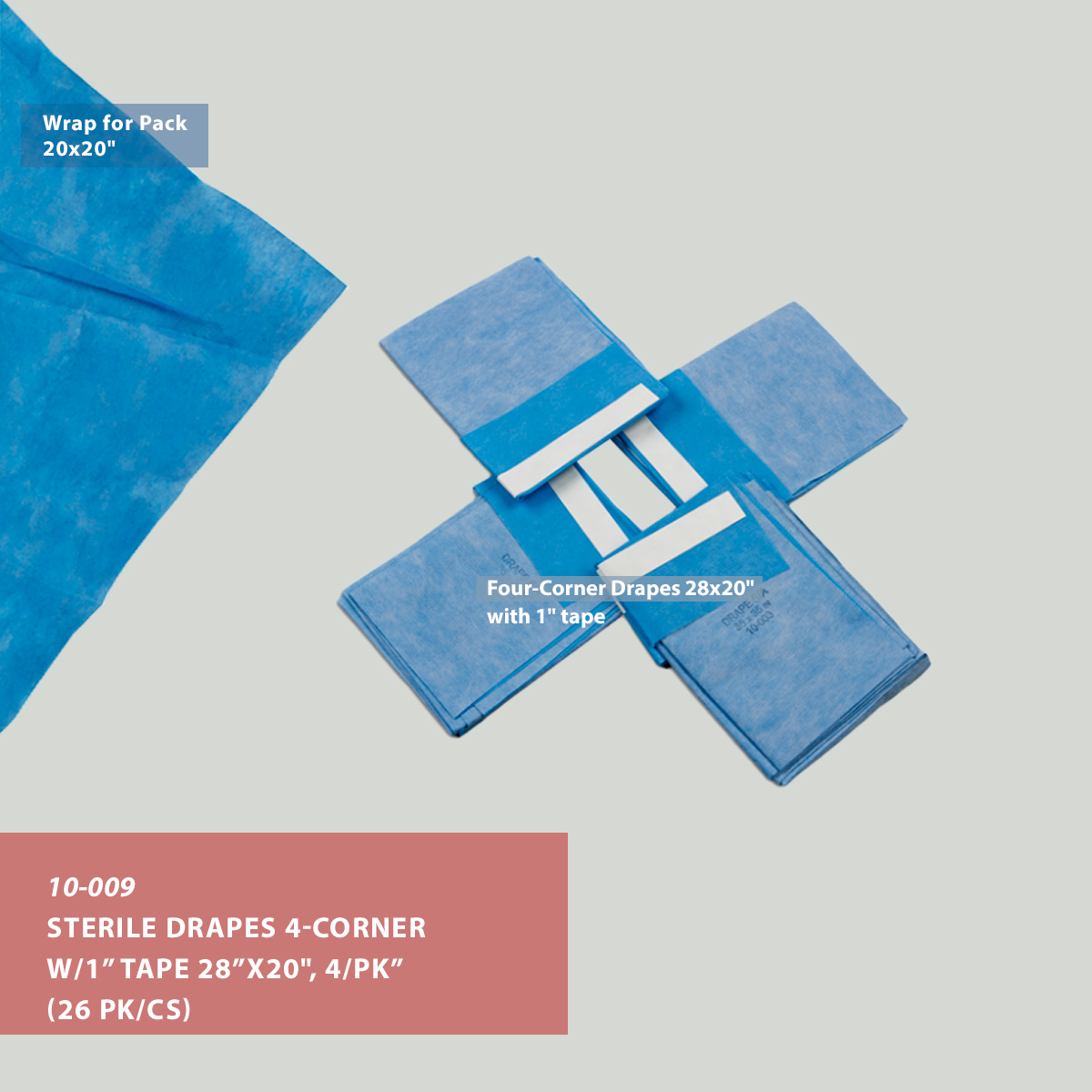Order #: 10-009 Drape, 4-Corner w/1″ Tape, SMS 28″x20″, 4/pack, Sterile (26/cs)