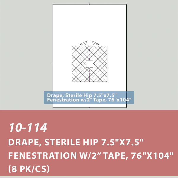 Order: # 10-114 Drape, Hip 7.5″x7.5″ Fenestration w/Tape, SMS 76″x104″, Sterile (8/cs)