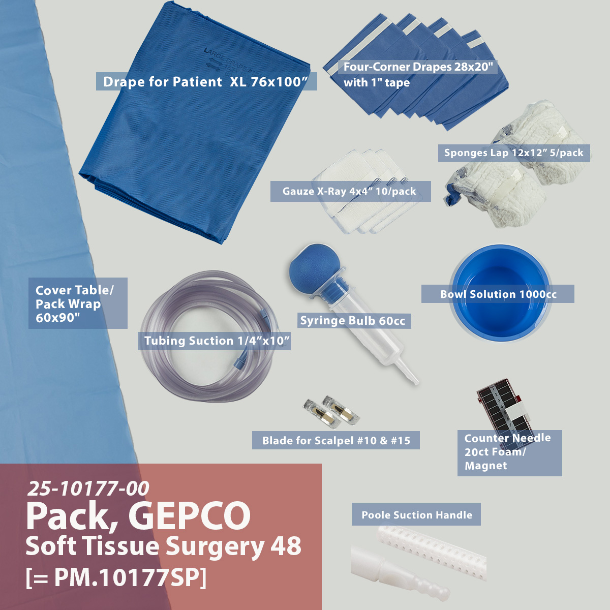| Suction/Irrigation | Syringe Bulb Irrigating 60cc, Tubing Suction 1/4" x 10', Tip, Suction Poole |