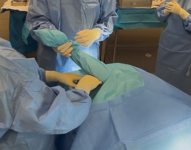 If you’re still using a human total hip drape its not likely you’re isolating the operative site effectively. Our two styles both accomplish this with different securement mechanisms.